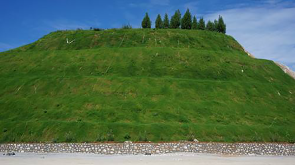 鋪設(shè)植被毯:展開植被毯,將植被毯一端置入溝內(nèi)填土壓實(shí)后用竹簽或鋼筋將植被毯固定;將植被毯沿坡面展開,使之與地面充分接觸(可以經(jīng)過輕微鎮(zhèn)壓處理)然后用竹簽將展開的植被毯固定在坡面上,坡腳處的植被毯用土鎮(zhèn)壓以防止被風(fēng)掀起;植被毯鋪設(shè)的邊緣接觸要保持整齊一致,植被毯鋪設(shè)完畢不允許隨便解開植被,以便確保種植的正常發(fā)芽和生長。