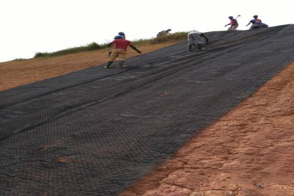 主要是清除坡面上已死的雜草、草根、施工垃圾、較大的石塊等不利護(hù)坡草籽生長的東西。將這些清除后要用鐵耙將坡面摟平,這樣有利于肥料均勻的掛載坡面,不致全部滑落到坡腳,使得植被毯(草毯)更好地貼在坡面上。