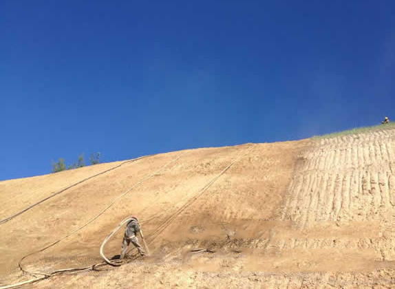 客土噴播是從國外引進的一項先進的邊坡綠化方法,這種方法是我國在九十年代時引進的,這種技術(shù)的引進使得石質(zhì)和砂質(zhì)這些不適于進行綠化的地質(zhì)條件變?yōu)榫G地,極大的促進了高速公路邊坡綠化的發(fā)展,并且,提高了高速公路的使用壽命??屯羾姴ブ阅軌虼竺娣e的迅速推廣,是由于客土噴播是在原來不利于植被生長的坡面表層噴撒經(jīng)過調(diào)配的有機土,人工制造適于植被生長的土質(zhì)條件,使邊坡綠化不再局限于一些地質(zhì)條件好的地區(qū),為邊坡綠化打開了一條光明大道。