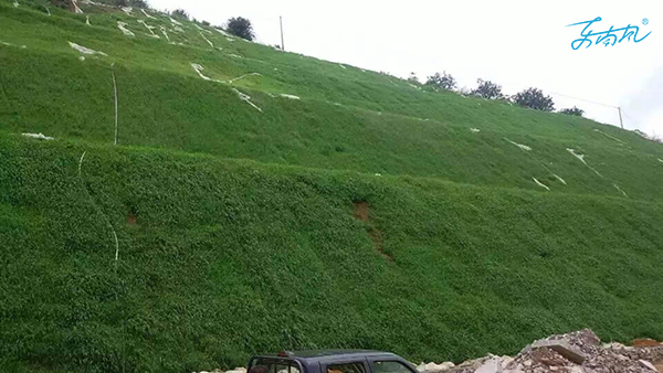 陡坡綠化:對(duì)于25°以上陡邊坡,綠化時(shí)要注意邊坡防護(hù),植物可選用客土噴播機(jī)噴播灌木、草本類種子。但這些破上打樁,設(shè)置柵欄,漿砌石框格以利于邊坡穩(wěn)定和植物生長(zhǎng),但這些措施并不能保證邊坡長(zhǎng)久的穩(wěn)定,后期還要維護(hù)和管理。對(duì)于重要邊坡,可選用植生砼綠化。
