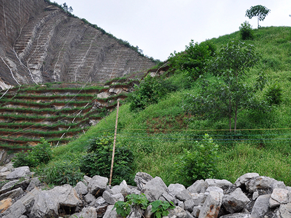 (2)科技含量高。木纖維利用本身的粗糙度與巖質(zhì)邊坡相結(jié)合,與網(wǎng)片相連接,同時木纖維與網(wǎng)片產(chǎn)生一種強(qiáng)大的立體加筋作用。木纖維營養(yǎng)基質(zhì)將草種、邊坡綠化專用肥和包裹材料融為一體,增加粗糙面的厚度。體現(xiàn)了生物種植的科學(xué)性、先進(jìn)性,是礦山綠化技術(shù)的一次革命。