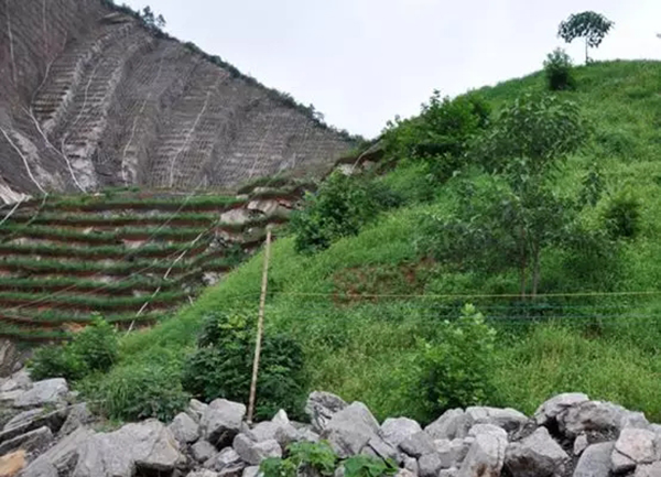 邊坡治理的主要工作是要穩(wěn)定邊坡。該過程的任務(wù)是清除危石、降坡削坡,將未形成臺(tái)階的懸崖盡量構(gòu)成水平臺(tái)階,把邊坡的坡度降到安全角度以下,以消除崩塌隱患。隨后,要對(duì)已經(jīng)處理的邊坡進(jìn)行復(fù)綠,使其進(jìn)一步保持穩(wěn)定。