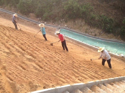 采用人工方式將種子等混合物均勻地撒播至邊坡表層。自上而下實施撒播。