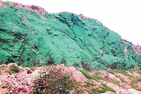 河南省三門峽市錦濱礦業(yè)有限公司在礦區(qū)環(huán)境恢復治理過程中,未經(jīng)審批擅自將三門峽開曼礦區(qū)“山體噴綠”。