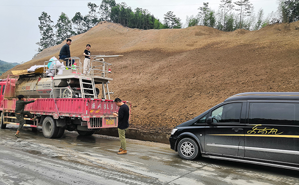 將客土材料如噴播木纖維、保水劑、營養(yǎng)液等和植物種子加入客土噴播機(jī),加水?dāng)嚢杈鶆蚣纯蛇M(jìn)行噴播施工。