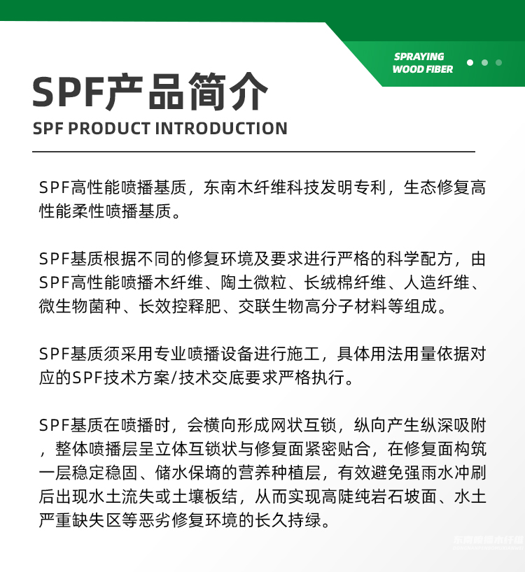 東南木纖維科技有限公司,成功研發(fā)了適合坡道、礦山、高速路、山地、園林綠化或生態(tài)恢復(fù)的木質(zhì)纖維,產(chǎn)品好評(píng)如潮,真正做到了完美替代進(jìn)口木纖維。