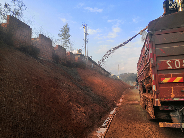 安徽永泰公司邊坡綠化工程地址位于安徽寧國,為東南生態(tài)修復(fù)公司的本土項(xiàng)目,項(xiàng)目施工快速方便,2個工人一臺噴播機(jī)一天完成,施工成本較其他工藝相比低很多。