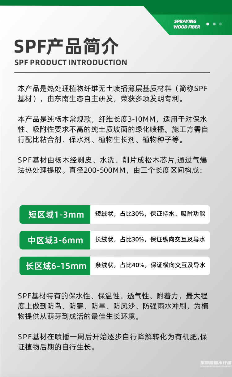 東南木纖維科技有限公司,成功研發(fā)了適合坡道、礦山、高速路、山地、園林綠化或生態(tài)恢復(fù)的木質(zhì)纖維,產(chǎn)品好評(píng)如潮,真正做到了完美替代進(jìn)口木纖維。